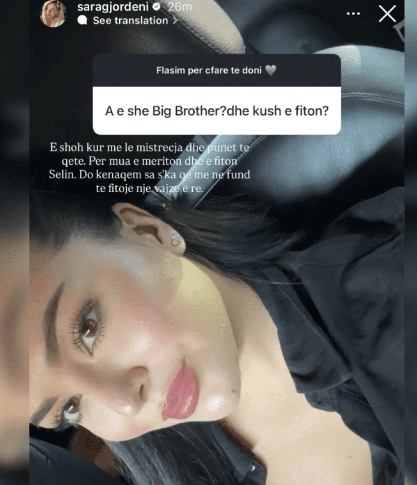 Ish-banorja e “Big Brother VIP Albania”, Sara Gjordeni, ka tërhequr sërish vëmendjen në rrjetet sociale, duke ndarë mendimin e saj për një nga temat më të diskutuara të momentit – fituesin e mundshëm të BBVA.