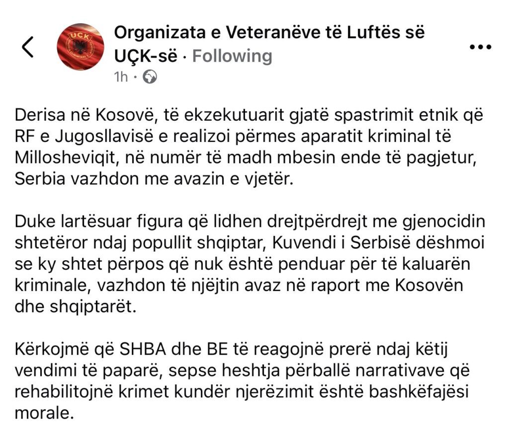 SKANDAL NË SERBI: KUVENDI ORGANIZON EKSPOZITË PËR FIGURËN E DËNUAR TË LUFTËS – REAGON OVL-UÇK