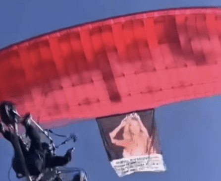 Një parashutë që fluturoi mbi shtëpinë e spektaklit mbante një mesazh të drejtpërdrejtë nga familja e saj: