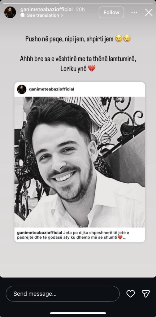 Lorik Abazi ishte nipi i këngëtares së njohur kosovare Ganimete Abazi, e cila kishte njoftuar për humbjen e madhe në rrjetet sociale.