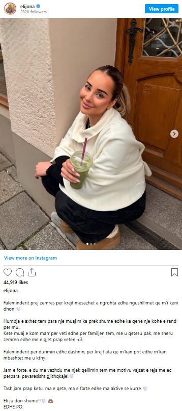 Pas një mungese që ngriti shumë pikëpyetje, Elijona është rikthyer papritur në rrjetet sociale – dhe ajo që tregoi ka emocionuar ndjekësit
